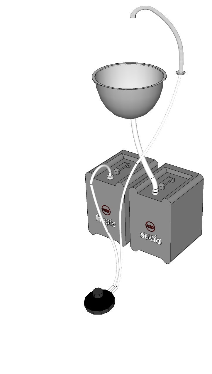 - 1 fixed spout. 2 x 10-liter tanks (for clean and dirty water).