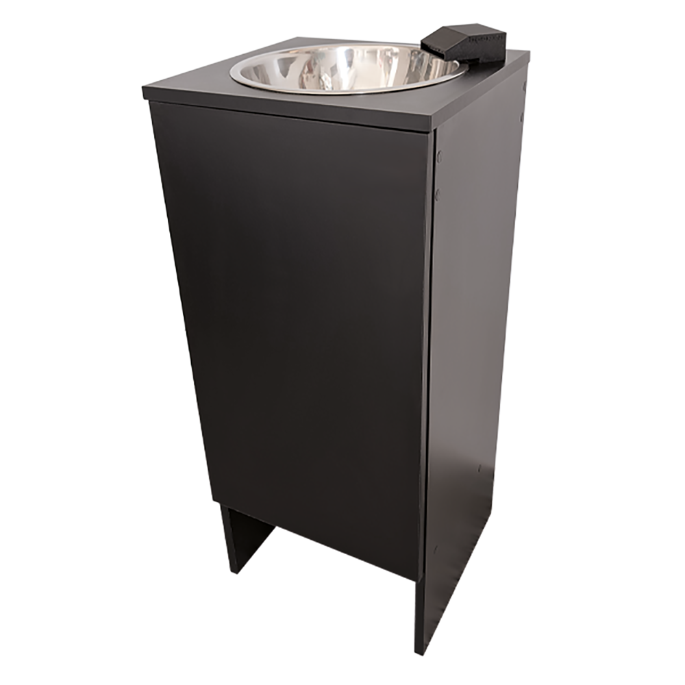 Lavamanos autónomo Mini Clinic. Grifo cascada extra bajo. EléctricoNo necesita toma de agua ni desagüe. Mueble fabricado en melamina negra, blanca o gris tormenta. Grifo Cascada extra bajo polietileno negro, blanco o gris, diseñado específicamente para lavamanos autónomos. ... Ver más Dos bidones de 10 litros, uno para el agua limpia y el otro para la sucia. Medidas: 37 x 35 x 85 cm. Puerta frontal para fácil acceso al interior. Bomba eléctrica 12 V con alimentador 220 V. OPCIONES: KIT de agua caliente y dispensador de gel en encimera. Ver en ACCESORIOS.