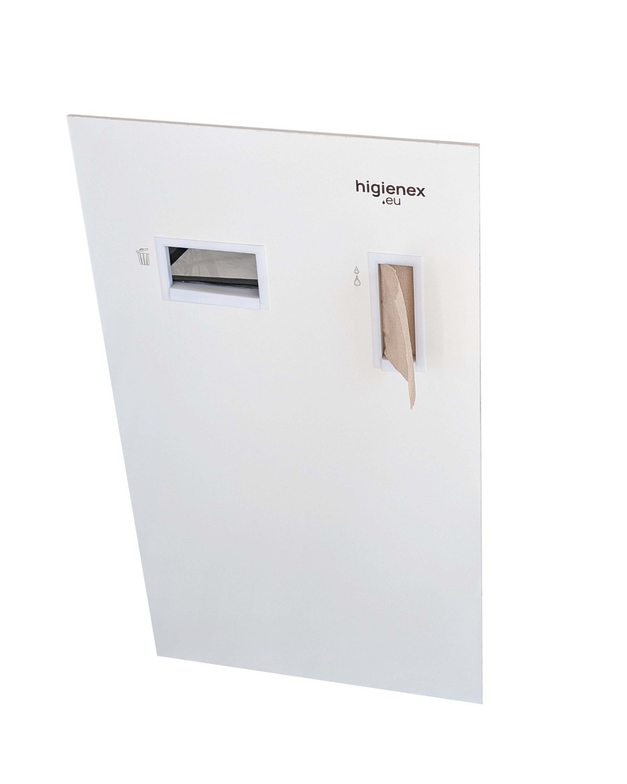 Panel lavamanos higienex con papelera y dispensador servilletas.Panel opcional o repuesto para nuestros lavamanos autónomos Higienex. Panel en melamina blanca con dispensador de toallitas y papelera. |